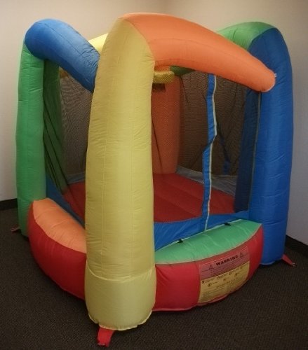 Package includes: Bounce House; a low-noise UL continue-flow blower/pump; four(4) Ground Sprikes; a Storage/Carrying Bag; Sand Pouches & a supply of Repair Patch Materials. Ball Pit Balls shown are not included. Order with some crush-proof balls for extra fun. Balls sold in quantity of 100 balls=ASIN# B00AN2S9K8 / 150 balls=ASIN# B00AN3IH68 / 200 balls=ASIN# B00AN3L7B0 / 300 balls=ASIN# B00AN3PILK / 500 balls=ASIN# B00AN3Z73E.Built-in ball hoop(1) and all around safety net. Bounce area measured approx 50" x 50" supports single kid (or adult) up to 80 lbs, or two(2) kids total of 150 lbs can jump at the same time. Will support single adult (no jumping please) up to 150 lbs so Mom or Pop can joint in with a single younger kid for some family fun. Minor cuts/leaks will not affect the function of the unit, or it can be easily fixed with a repair patch or duct-tape..Manufactured exclusively for CMS with "Phthalate Free" non-PVC puncture resist nylon material, In combination of 6 bright colors: Red, Yellow, Orange, Blue, Green & Purple. This Unique Fabric similar (but in much thicker grade) to one used to build camping tent, custom coated w/ a child safe colorless lamination/backing to retain air. Packaged w/ Blower Pump (must be on during use) inflates the bounce house in less than 30 seconds..**As of 2/11/2013, New improved 2013 Model will be shipped** Perfect Size for indoor use (or outdoor use). Please check our full lines of Newly Improved Models available thru separate listings on Amazon. Please search on Amazon website by using keywords " My Bouncer Popper " or simply cut & paste and/or using the following url/web address: " http://www.amazon.com/s/ref=nb_sb_noss?url=search-alias%3Daps&field-keywords=my+bouncer+popper "..New Round Bouncer designed to fit tight & restricted indoor space, as the blower pump can be positioned at the corner of the room. Approx overall footprint = 78"L x 78"W x 72"H (plus clearance for the blower pump). Other models and sizes available, please check other Amazon listing pages for details. Any question, please contact merchant for additional availability and details...little tikes classic castle My Bouncer Little Round Castle Bounce 78" L x 78" W x 72" H Ball Pit Popper w/ Phthalate Free Puncture Resist Nylon Material Features.
